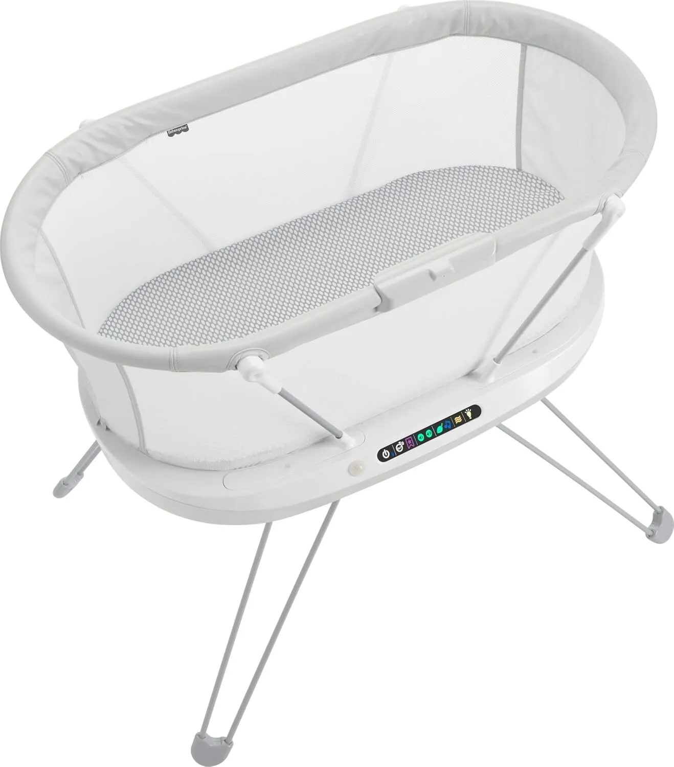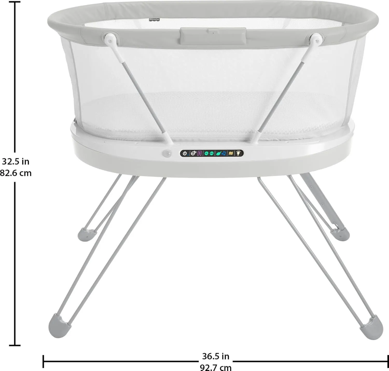 The Fisher-Price Baby Bedside Sleeper Luminate Bassinet is designed to give your newborn a safe and soothing sleep space right by your side. With soft mesh sides for visibility and airflow, this bassinet includes calming lights, soothing sounds, and gentle vibrations to help lull your baby to sleep. Its adjustable height fits easily beside most beds, making nighttime care more convenient for parents. Lightweight and modern, the Fisher-Price Luminate Bassinet is a perfect rental option for safe, comfortable newborn sleep at home or while traveling.